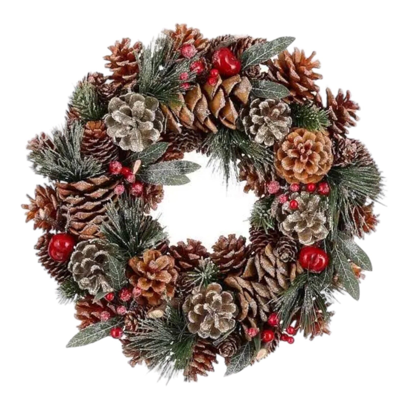 Onze kerstkrans heeft een diepgroene kleur en dikke takken, waardoor hij er natuurlijk en realistisch uitziet. Hij gaat vele jaren mee zonder het milieu te schaden. Het is een uitstekende kerstdecoratie meteen bij de ingang van je huis.