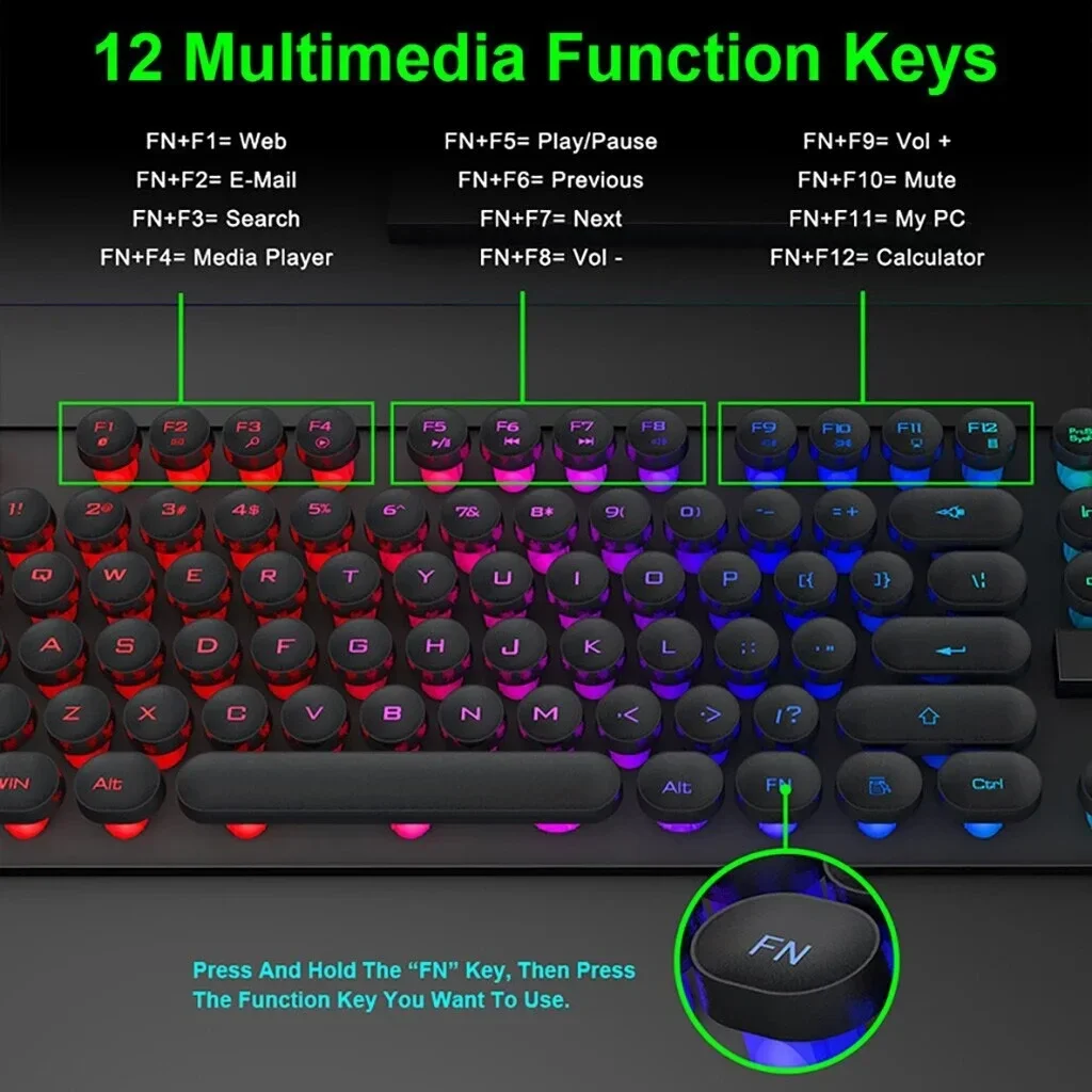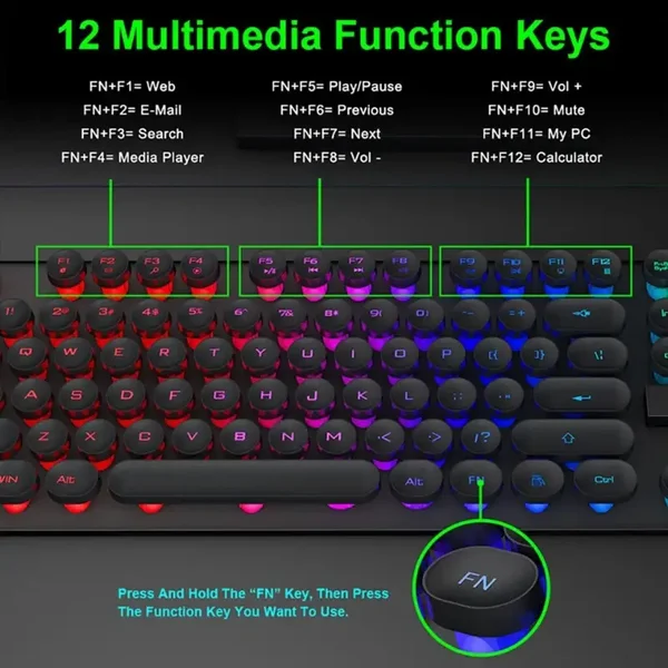 Het iMice AK-800 bedrade gaming toetsenbord combineert comfort, duurzaamheid en een stijlvolle uitstraling voor zowel gamen als dagelijks gebruik. Het ergonomische ontwerp met verstelbare pootjes zorgt voor een prettige typhoek, terwijl de RGB backlit verlichting met kleurverloop en lasergegraveerde transparante toetsen een moderne gaminglook geven. Dankzij 19 anti-ghosting toetsen voer je meerdere acties tegelijk nauwkeurig uit, ideaal voor intensieve games. De stille siliconen toetsen bieden een soepele aanslag en het dubbel waterbestendige ontwerp beschermt tegen morsen. Met USB plug & play is het toetsenbord direct klaar voor gebruik en volledig compatibel met Windows 11 en eerdere Windows-versies.