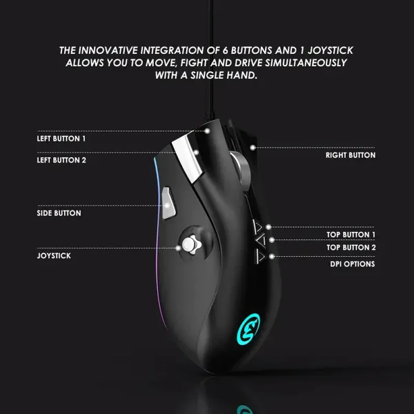 De GameSir GM200 is een veelzijdige bedrade gamingmuis met een uniek ontwerp van 8 programmeerbare knoppen en een geïntegreerde joystick. Via de GameSir G-Core software wijs je eenvoudig macro’s toe en schakel je tussen twee vooraf ingestelde profielen voor FPS- en MOBA-games.