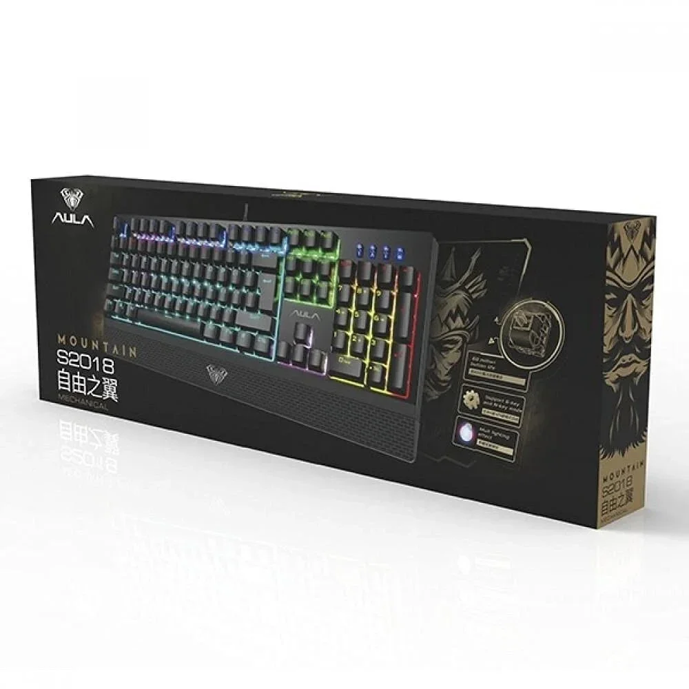 Het Aula Mountain S2018 mechanisch gaming toetsenbord is ontworpen voor gamers die precisie, duurzaamheid en comfort eisen. Dankzij de mechanische blauwe switches geniet je van een duidelijke klikrespons en een levensduur tot 60 miljoen toetsaanslagen.