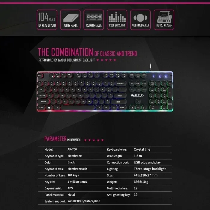iMice AK-700 – Retro Punk Gaming Toetsenbord
