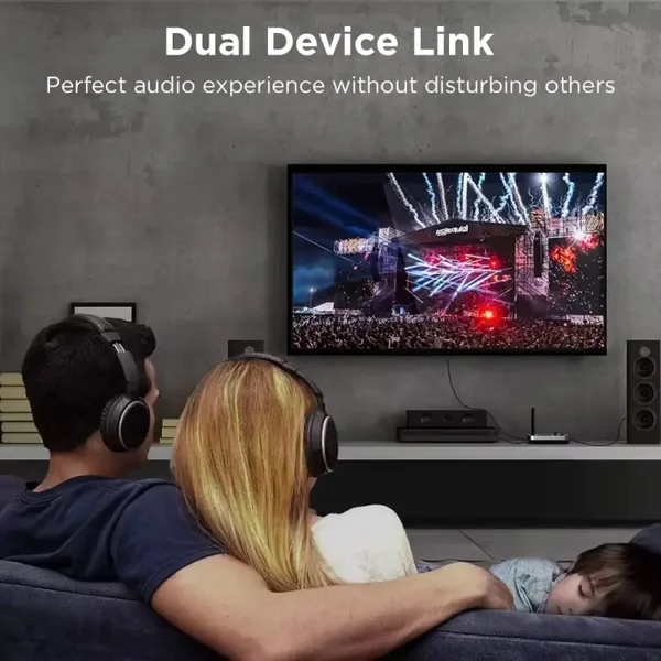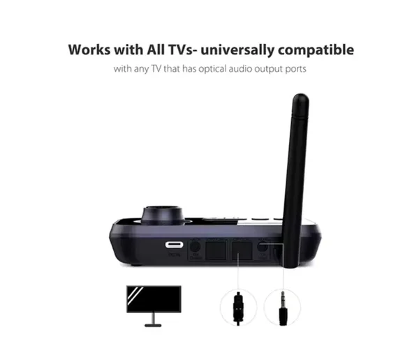 Met deze 3-in-1 adapter hoef je nooit meer te kiezen tussen bedrade en draadloze opties. Of je nu laat in de avond tv wilt kijken zonder anderen te storen, of muziek wilt streamen naar je draadloze speakers, dit apparaat biedt een naadloze en storingsvrije oplossing.
